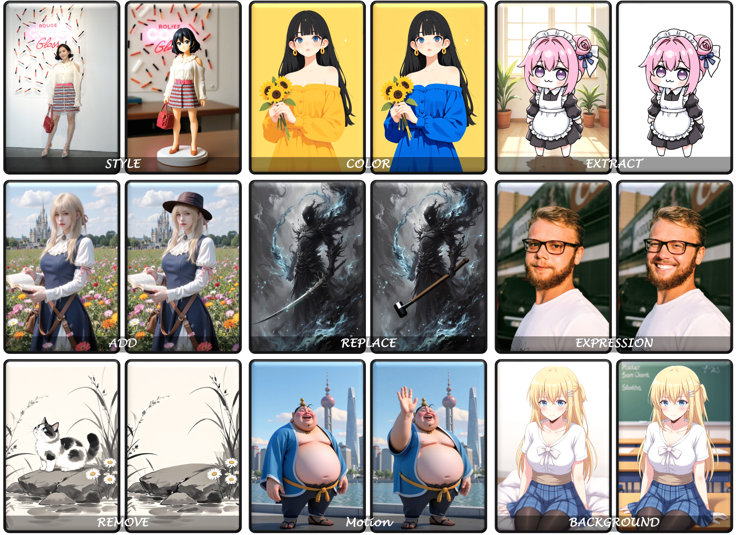 OmniGen2 allows you to edit images using natural language instructions. You can add objects, remove elements, change colors, modify scenes, and perform complex edits by simply describing what you want to change using OmniGen2 AI.